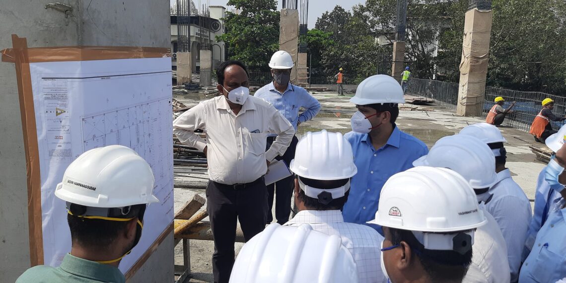 इमारतीच्या बांधकामाची पाहणी करताना आयुक्तांनी फ्लोअरींग स्टील वर्क तसेच सुरू असलेल्या काँक्रिटीकरण कामाची बारकाईने पाहणी केली. त्याचप्रमाणे मटेरिअल टेस्टींग लॅबरोटरीची पाहणी करीत वापरण्यात येणा-या साहित्याची व करण्यात येणा-या कामाची गुणवत्ता उत्तम राहील यावर कटाक्षाने लक्ष ठेवण्याचे निर्देश अभियांत्रिकी विभागास दिले. बस स्टॉपवरील शेडवर सोलार सिस्टीम लावल्यास वीज बचत होईल अशा सूचना आयुक्तांनी केल्या. कामे करताना सुरक्षा नियमांचे पालन करण्याचे सूचित करीत सुरक्षा साधनांचा अनिवार्य वापर करण्याचेही त्यांनी सूचित केले.