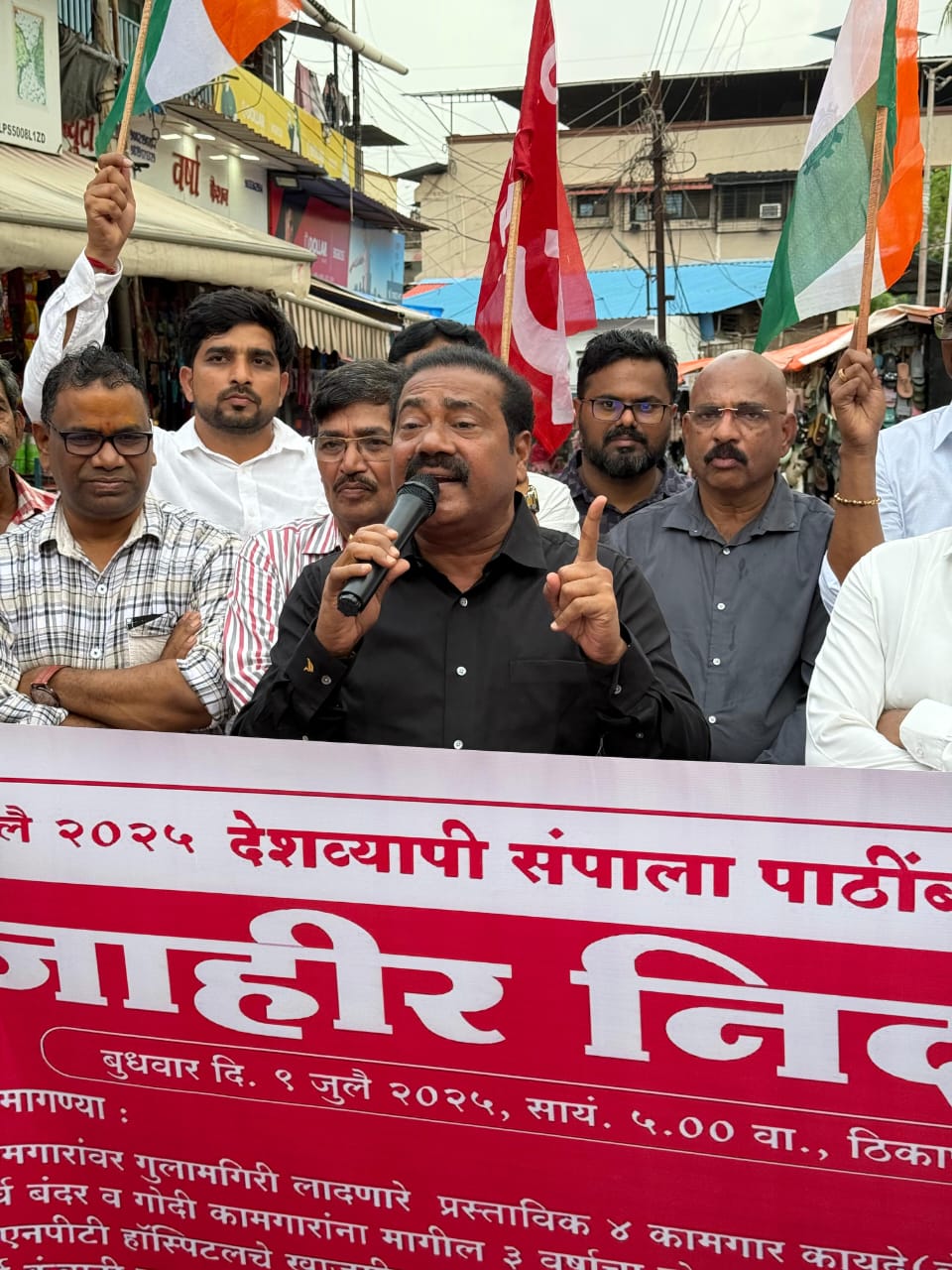 यावेळी महेंद्रशेठ घरत यांच्या नेतृत्वाखाली न्यू मॅरिटाईम अण्ड जनरल कामगार संघटनेचे कामगार मोठ्या संख्येने रस्त्यावर आले होते. कामगार नेते रवी घरत, रमेश ठाकूर, वैभव पाटील, किरीट पाटील मान्यवर आणि शेकडो कामगार उपस्थित होते.