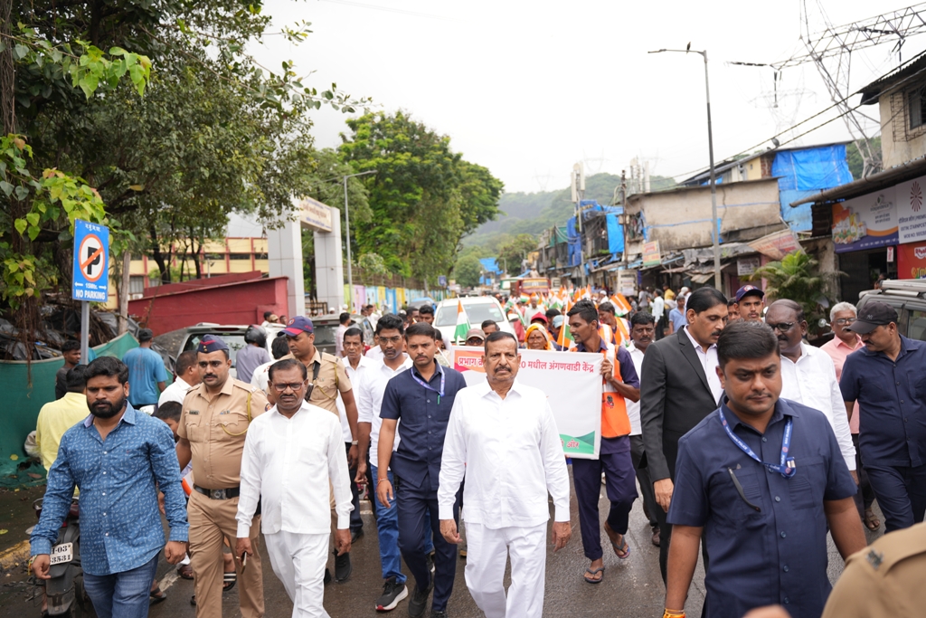 या अनुषंगाने बुधवार, दि. १३ ऑगस्ट २०२५ रोजी डॉ.बाबासाहेब आंबेडकर नगर रबाळे येथील राजर्षी छत्रपती शाहू महाराज विद्यालय नमुंमपा शाळा क्र. ५५ येथे तिरंगा रॅलीचे भव्यतम आयोजन करण्यात आले होते. यावेळी महाराष्ट्र राज्याचे वन मंत्री गणेश नाईक यांनी विशेष मान्यवर अतिथी म्हणून उपस्थित राहून शुभेच्छा दिल्या. यावेळी मंत्री गणेश नाईकांच्या हस्ते ध्वजारोहण करण्यात आले. मंत्री नाईक तसेच महापालिका आयुक्त डॉ. कैलास शिंदे यांनी विद्यार्थ्यांना राष्ट्रभक्तीचे महत्व सांगितले.