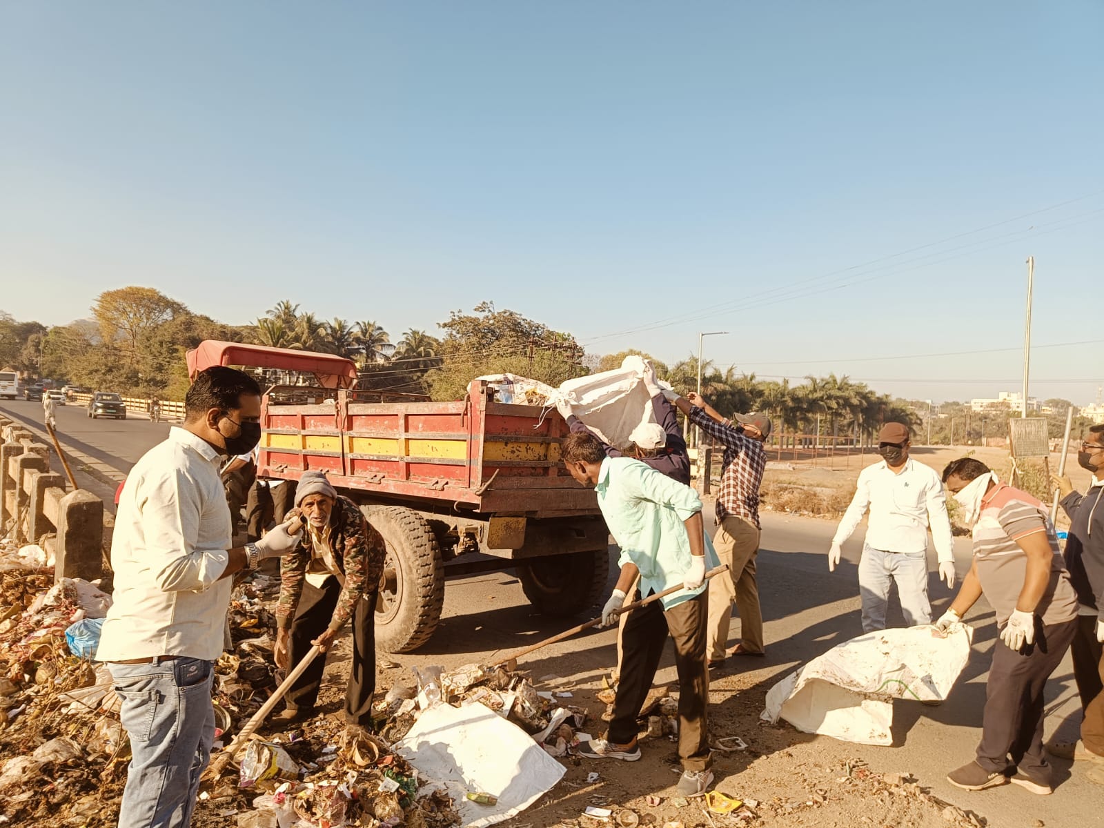 जुन्नर : डॉ. श्री. नानासाहेब धर्माधिकारी प्रतिष्ठान रेवदंडा, ता. अलिबाग जि. रायगड यांच्या वतीने नारायणगाव ग्रामपंचायत परिसरामध्ये स्वच्छता अभियानाचे आयोजन करण्यात आले होते. महाराष्ट्र राज्याचे स्वच्छतादूत पद्मश्री महाराष्ट्रभूषण डॉ. आप्पासाहेब धर्माधिकारी व रायगडभूषण डॉ. सचिन दादा धर्माधिकारी यांच्या मार्गदर्शनाखाली या स्वच्छता अभियानाच्या आयोजन करण्यात आले होते. आपला परिसर स्वच्छ राहावा तसेच नागरिकांमध्ये स्वच्छतेविषयी जागरूकता यावी या उद्देशाने या अभियानाचे आयोजन करण्यात आले होते. सकाळी ८ वाजल्यापासून प्रतिष्ठानच्या सदस्यांनी नारायणगाव परिसरातील जुना पुणे नाशिक महामार्ग, पोलीस स्टेशन, बस स्थानक अशा एकूण चार हजार तीनशे चौरस मीटर जागेचे तसेच १६.५ किलोमीटर दुतर्फा रस्त्यांची स्वच्छता केली. यावेळी साधारणपणे तीन टन ओला कचरा व ७ टन सुका कचरा जमा करण्यात आला. ग्रामपंचायत मार्फत पुरवण्यात आलेल्या व प्रतिष्ठानच्या सदस्यांनी आणलेल्या ट्रॅक्टर ट्रॉलीमधून हा कचरा कचरा डेपोपर्यंत नेऊन त्याची विल्हेवाट लावण्यात आली. या स्वच्छता अभियानाच्याप्रसंगी जुन्नर तालुक्याचे आमदार शरद सोनवणे, उपसरपंच बाबु पाटे, परिवहन महामंडळाचे अशोक खंडागळे तसेच नारायणगाव परिसरातील नागरिक उपस्थित होते.