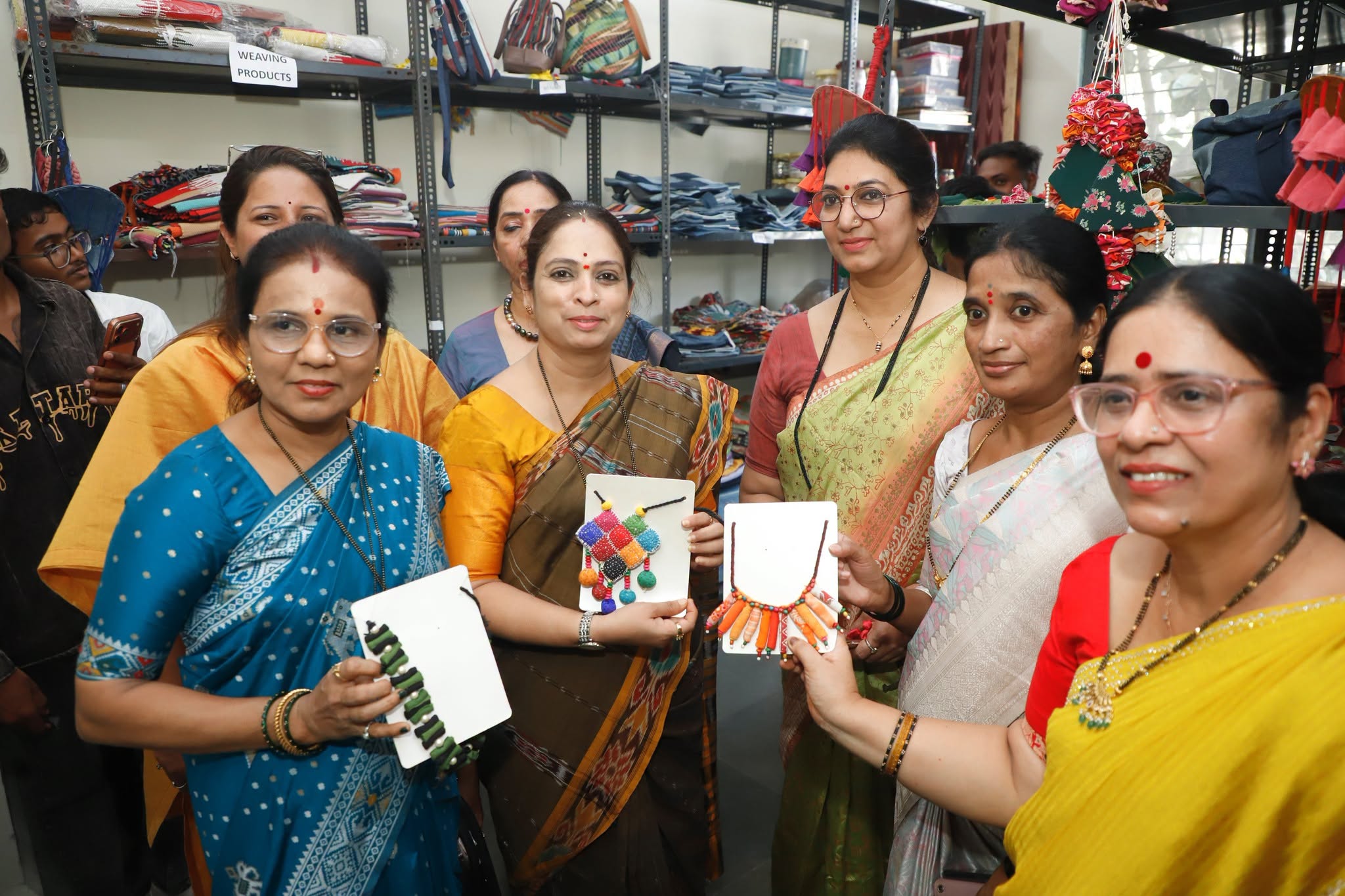 यावेळी महापौर सौ. सुजाता पाटील यांच्यासमवेत महिला व बालकल्याण समिती सभापती सलुजा सुतार, नगरसेविका अंजनी भोईर, रेखा म्हात्रे, स्वाती गुरखे, सुरेखा नरबागे, संतोषी म्हात्रे, टीआरएफ प्रकल्पाच्या विभागप्रमुख तथा उद्यान उपआयुक्त स्मिता काळे, केंद्रीय वस्त्र समितीचे संचालक तथा प्रकल्प समन्वयक डॉ.तपनकुमार रौत, प्रकल्प संचालक प्रकाश सैनी, मुख्य डिझायनर नुतन कजबजे, प्रकल्प व्यवस्थापक श्रीम.वैशाली कदम आणि टिआरएफ समुह उपस्थित होते.